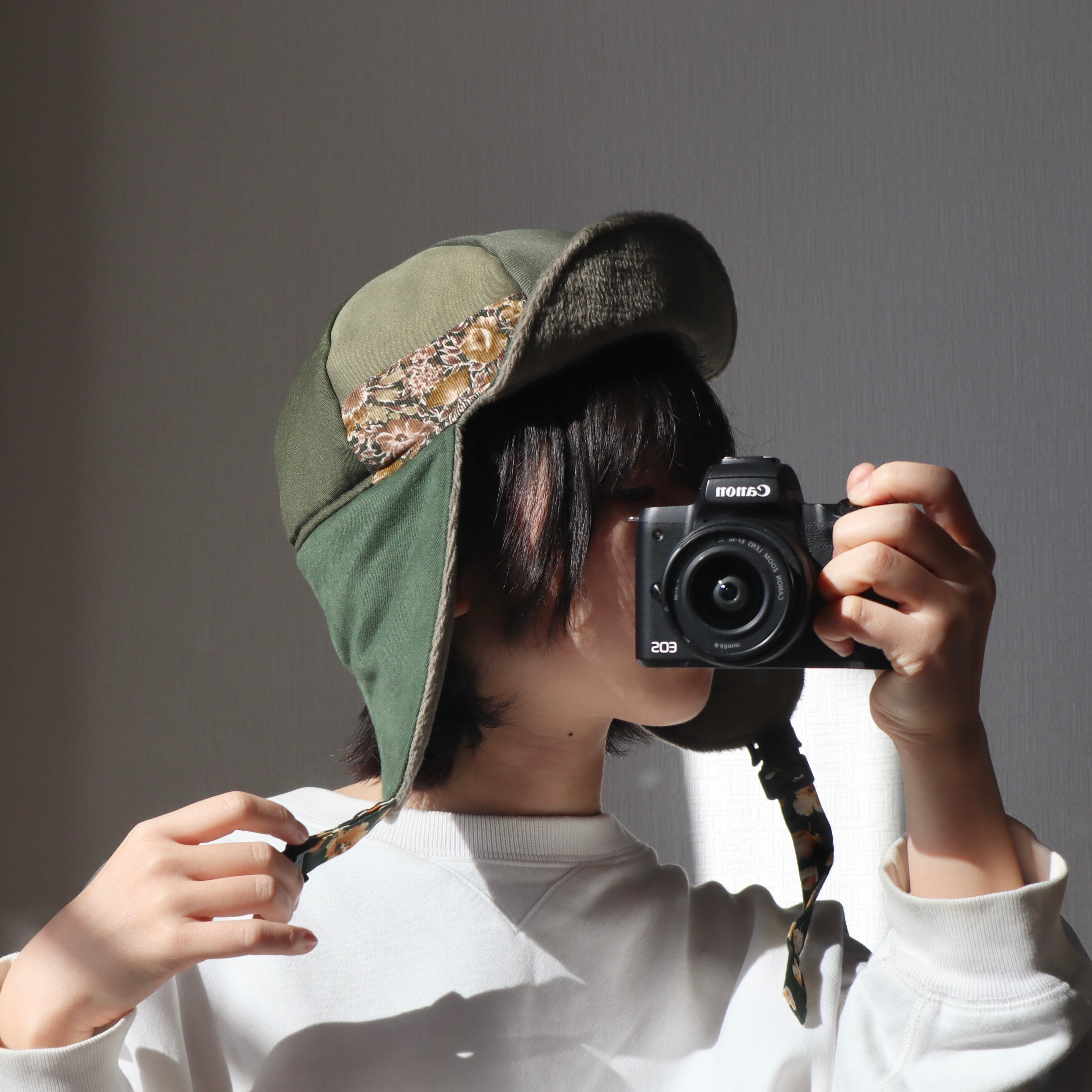 ツバを立てる/下ろす、サイドを頭上で留める/顎下で留めるなど様々な組み合わせでお楽しみいただけます◎