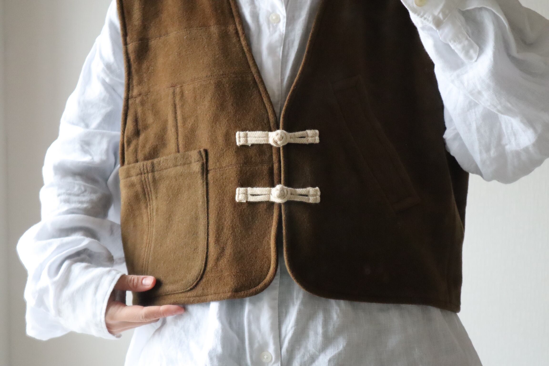 ウールのベストとチャイナボタンの組み合わせは唯一無二です。